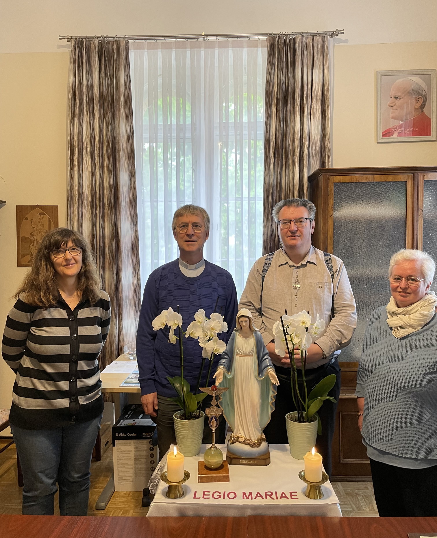 LEGION MARIENSAußer den wöchentlichen Gebetstreffen hat die Legion Mariens vielfältige Aufgaben. Älteren Menschen werden Geburtstagsbriefe in ihre Wohnungen, in Spitäler und Altersheime gebracht. Dadurch wird der Kontakt zur Pfarre aufrecht erhalten bzw. bei manchen Fernstehenden erst hergestellt. So erfüllt die Legion Mariens einen wichtigen Auftrag des Apostolats und der Evangelisation.